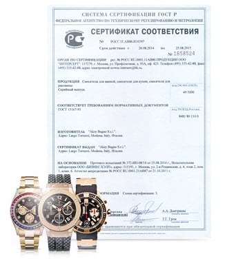 Между тем, на продукцию, указанную в пункте 4) часто получают добровольный сертификат соответствия. Это помогает производителю продемонстрировать искреннюю приверженность качеству своей продукции и заявить о повышенных потребительских свойствах часов. Кроме того, иногда наличие подобных документов — обязательное условием поставок в сетевые магазины и участия в тендерах или госзакупках.